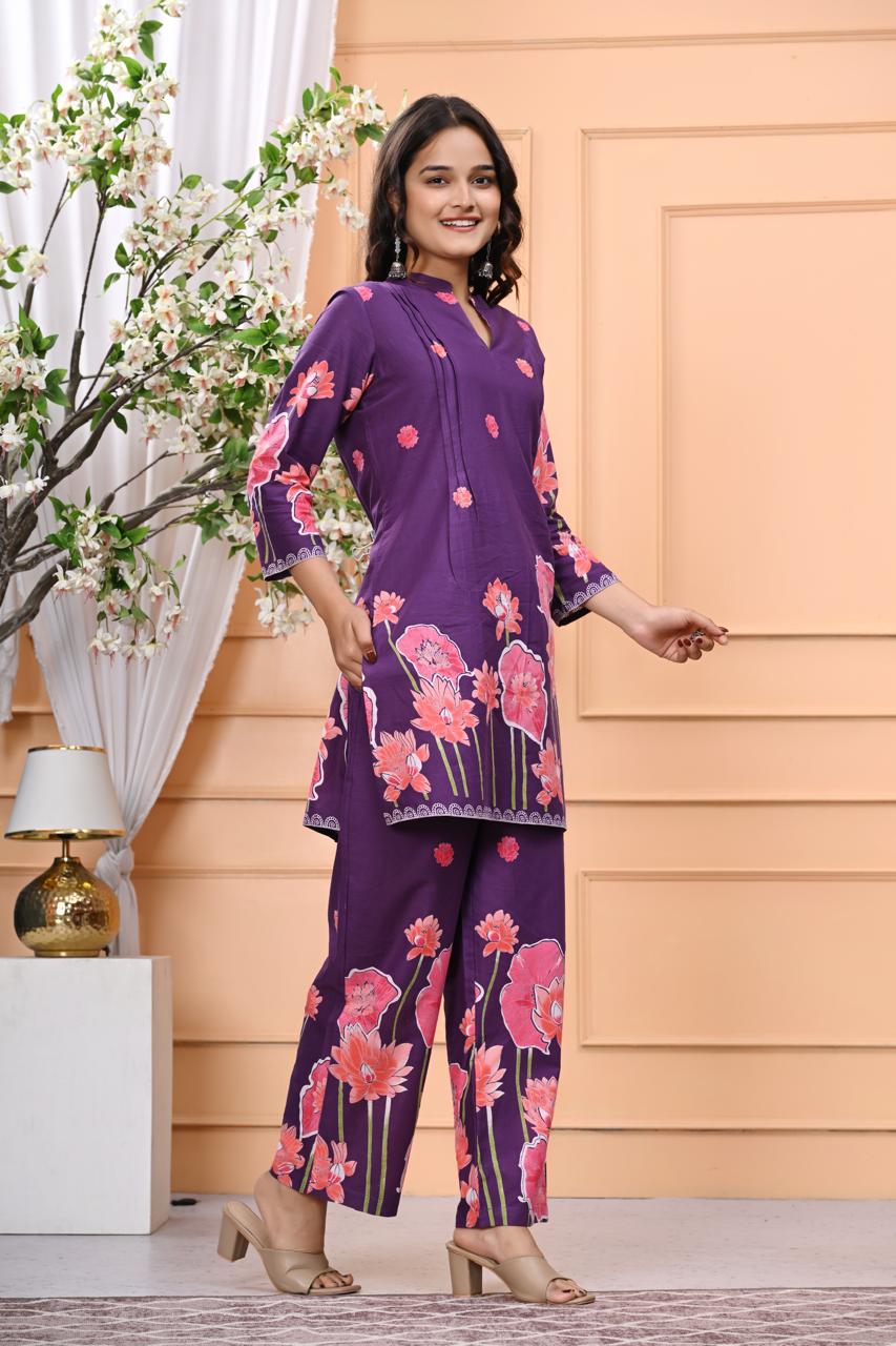 Set Includes: 1 Floral Printed Kurta + 1 Coordinating Palazzo Pants (Dupatta sold separately)
