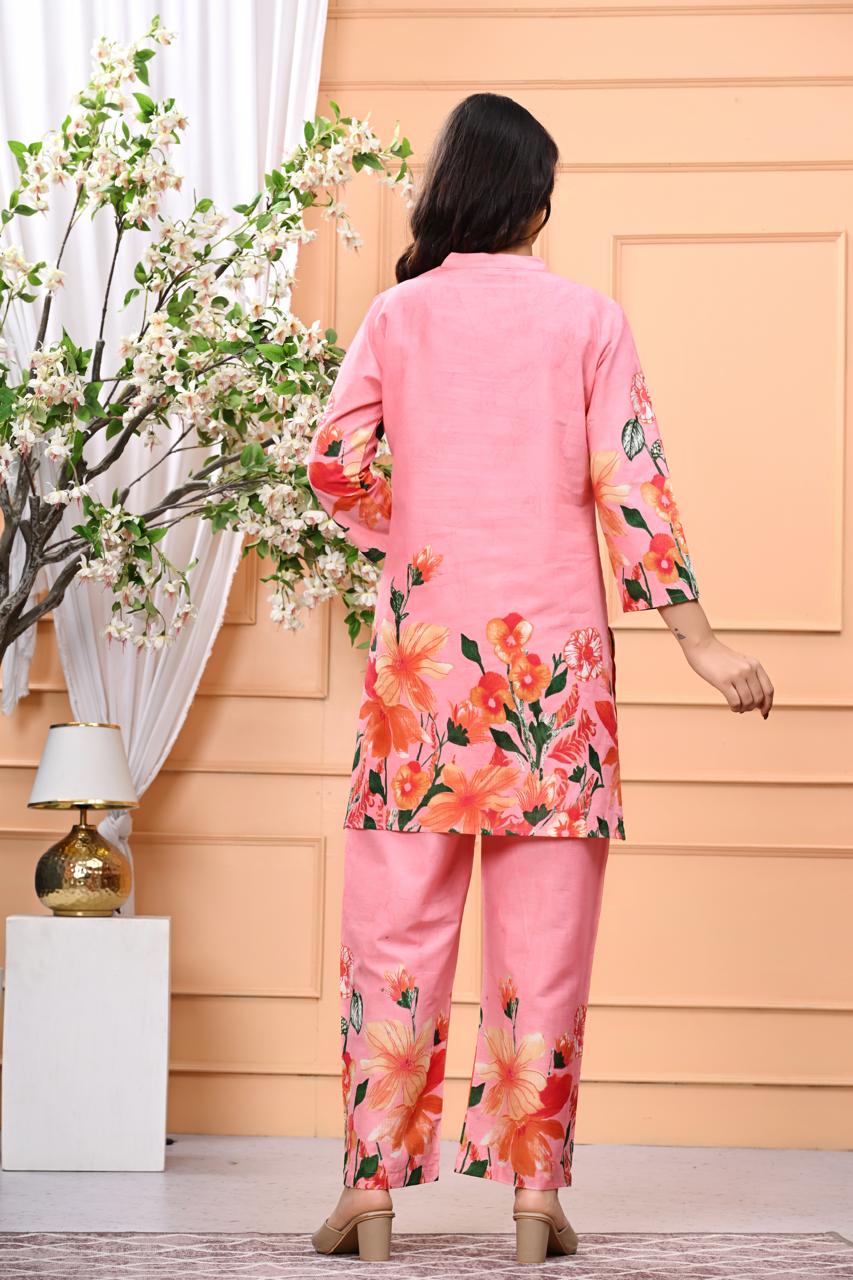 - Blush pink with coral botanical prints