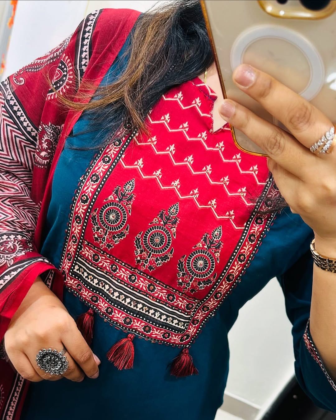 Bannisaa Classic Salwar Suit with Ajrakh Print Dupatta - Traditional Comfort Wear (3 piece suit)