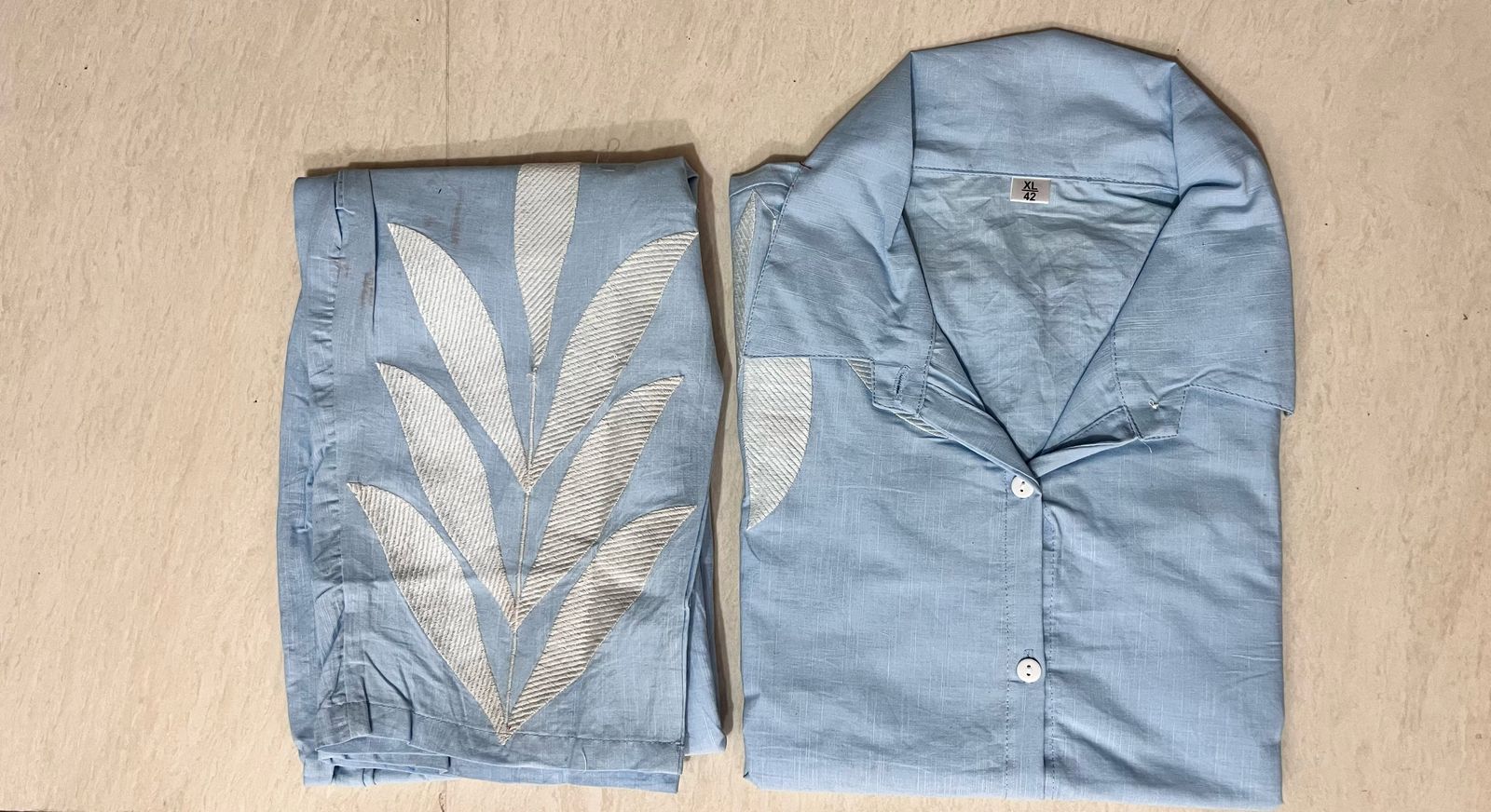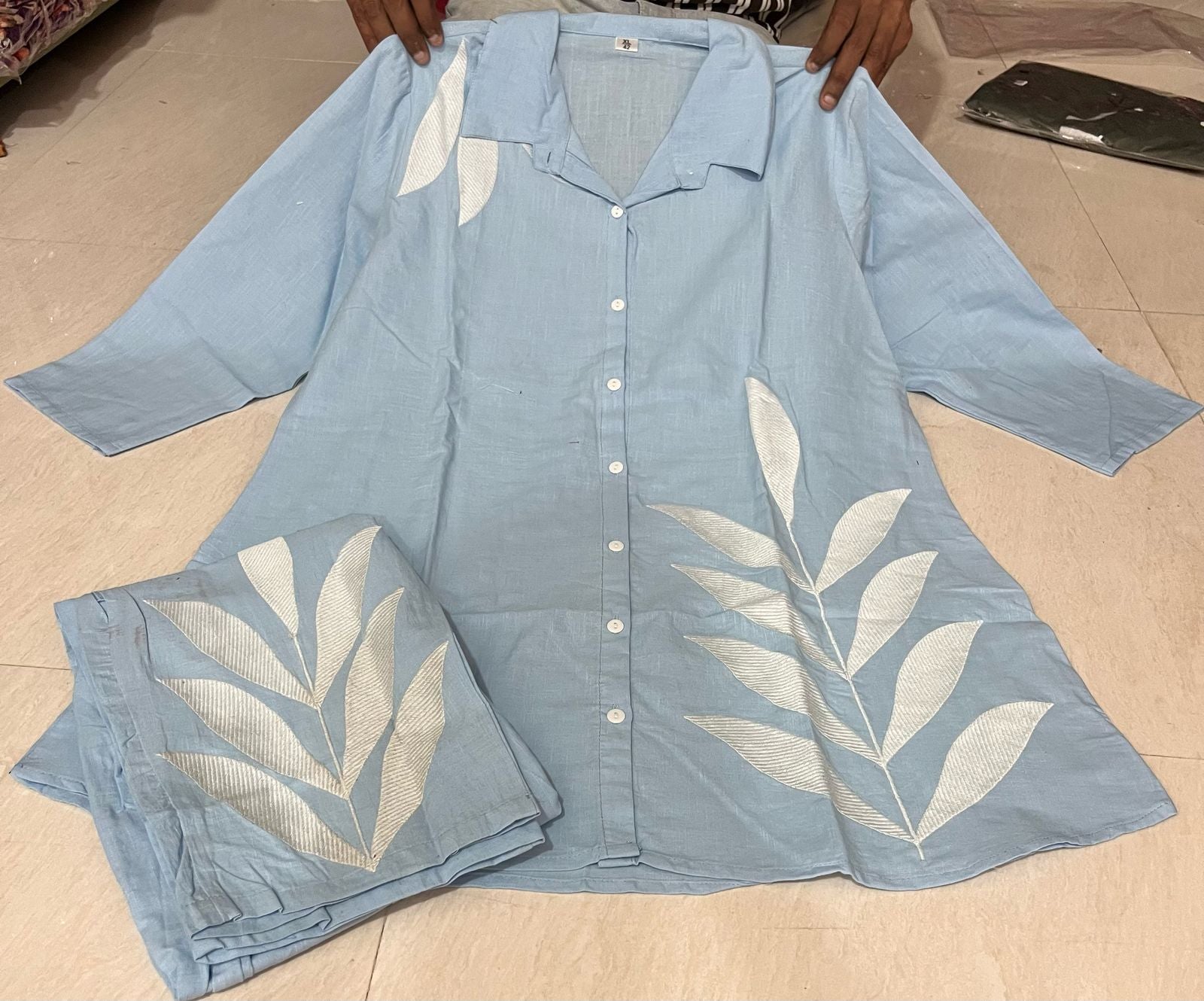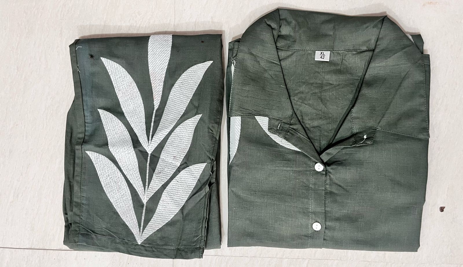 Style: Contemporary shirt-style co-ord sets with botanical leaf print